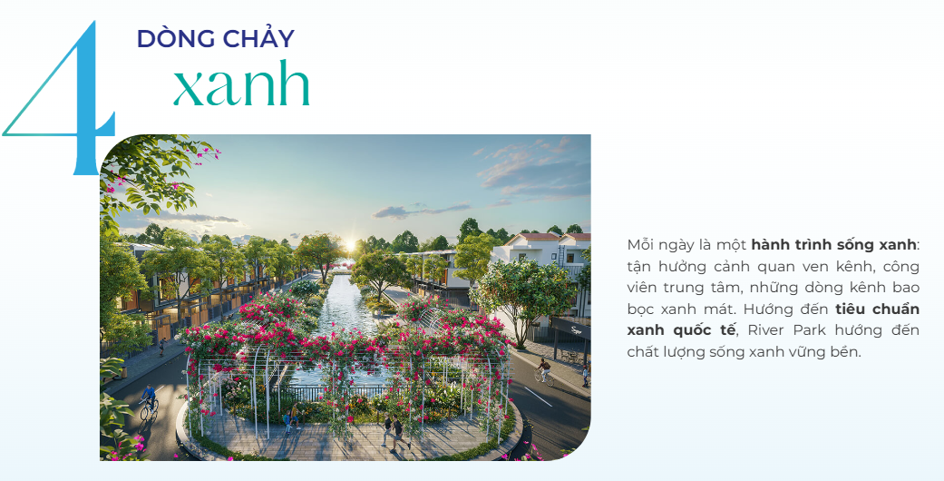 River Park đủ đầy tiện ích khởi nguồn một cuộc sống thịnh vượng. Nơi ươm mầm thế hệ trẻ với hệ thống giáo dục toàn diện ngay trong nội khu, đón nhịp sống sôi động với tiện nghi dịch vụ xứng tầm. Nơi bạn và gia đình sống xanh trong từng bước chân, khơi dậy niềm vui trong từng khoảnh khắc.